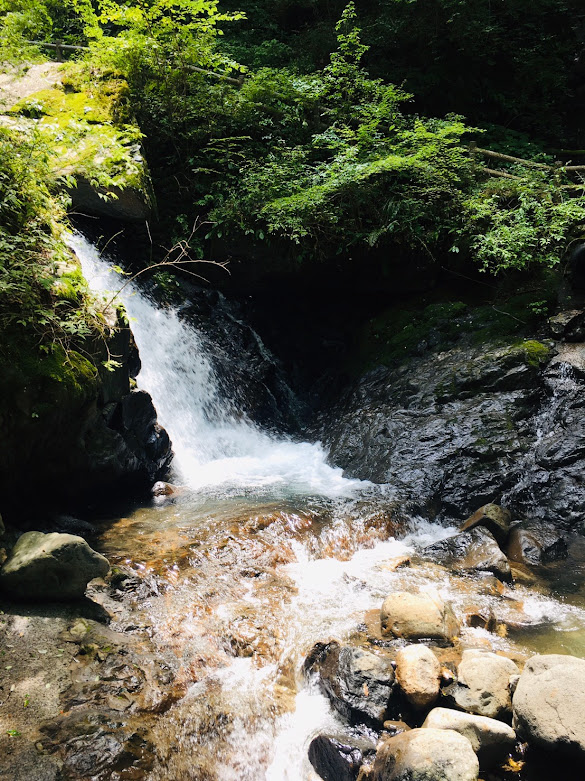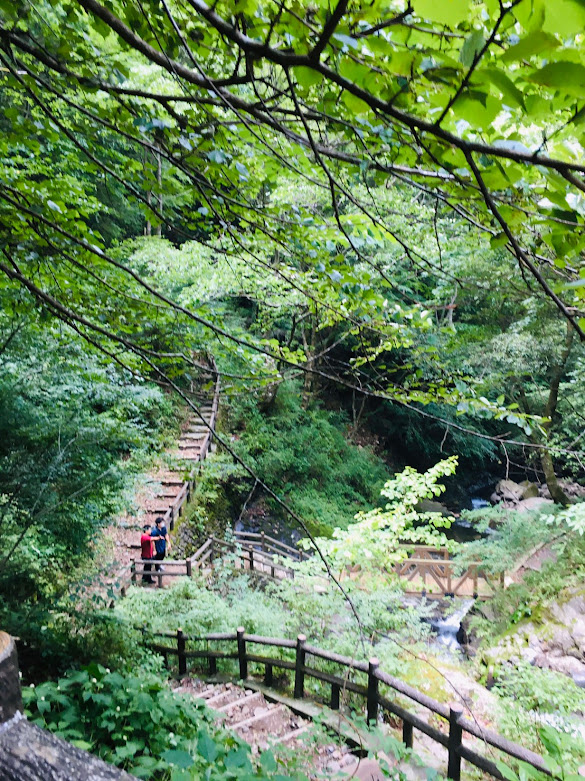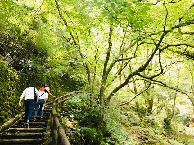 前两天去八釜溪谷,是一路往下的,但这次看瀑布是一路往上的。路很好走,比八釜溪谷容易多了。沿途一路是森林美景。