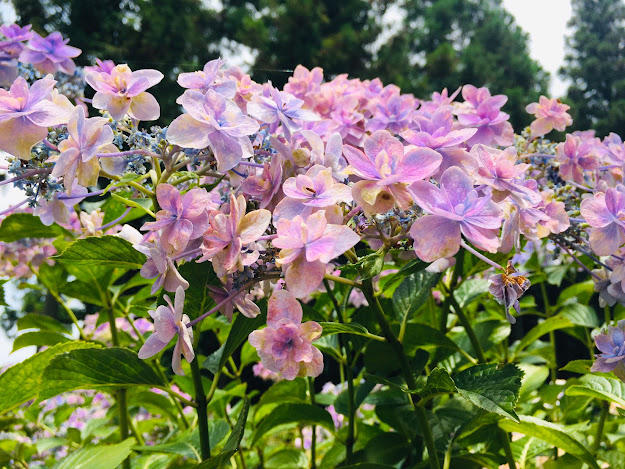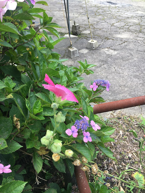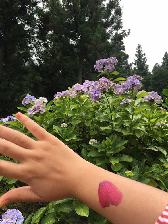 除了紫阳花,这里还有烧饼花(因为长得像烧饼)。这花是从底部开始开花的,开到最后一朵就表示梅雨季节结束。这花的特点还有可以玩纹身(以上信息由花草专家lele提供)。