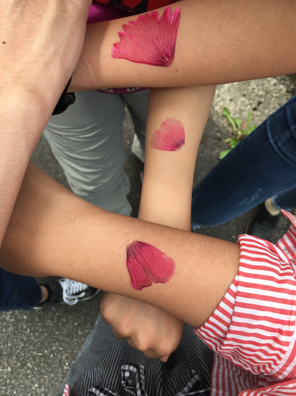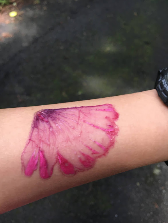 过了一段 时间再把花瓣撕掉,就成为纹身了~