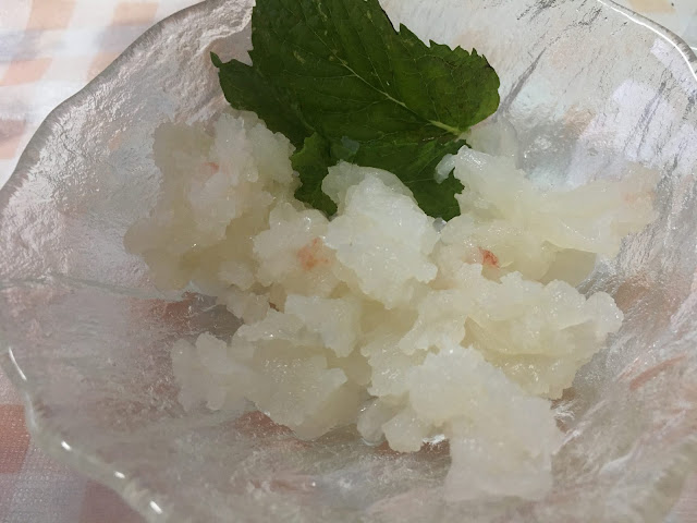 冰块提供,给客人放在口里降温用。室外有一个温度较高的小池,一个温度适中的大池及一个人泡的樽风吕(我最喜欢这个,很舒服)。