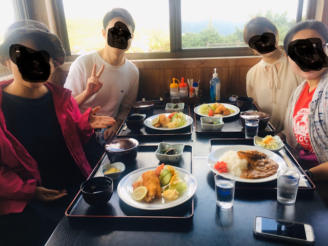 由于是平时,姬鹤庄开始吃饭时只有我们呢,这里不贵,我吃的咖喱990日元,其他有些1000出头的。屋外有烧烤的地方,看的是山景。餐厅的员工都是上了年纪的,很热情给我们介绍。这里有个很有意思的地方,就是公路(国道383)北侧的牛属于爱媛的,南侧是高知的。