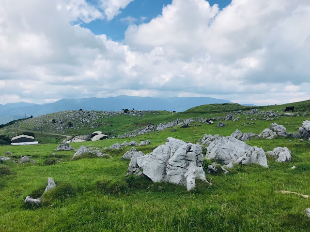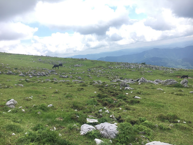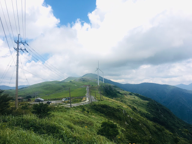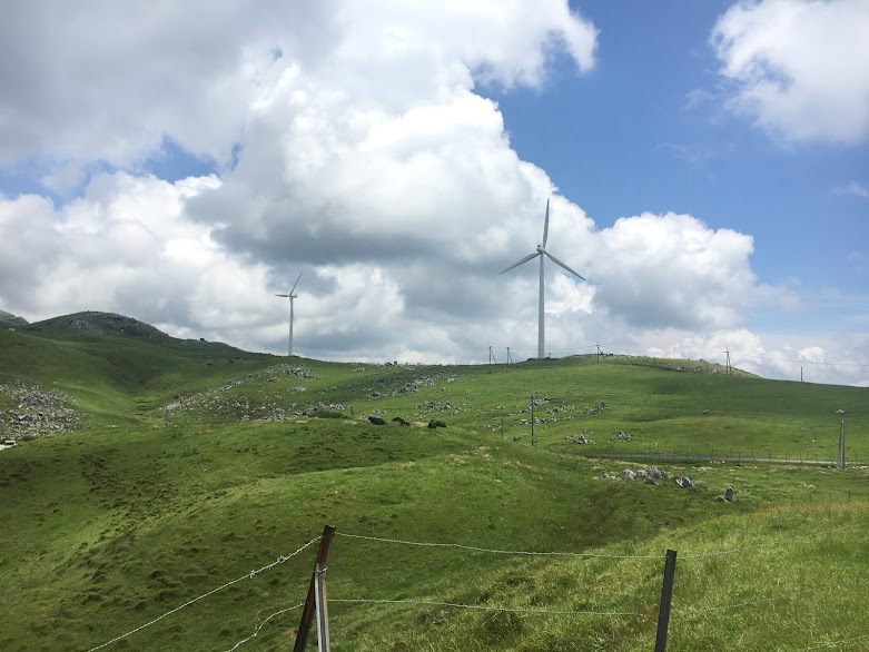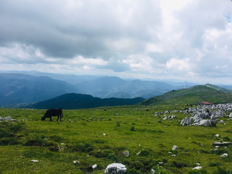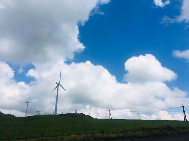 我们开车继续上路了~,沿着383天空之路走到天狗庄,部分路段比较窄,是单程路。这里是高原+喀斯特地貌+牧场,还有风车。看起来就像欧洲,非常漂亮,很梦幻。虽然以前也见过牛,但第一次在大牧场看它们吃草。在383上开车真有行走天空的感觉。