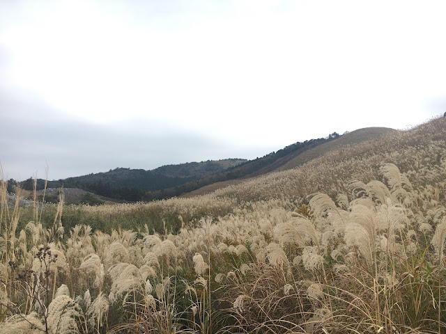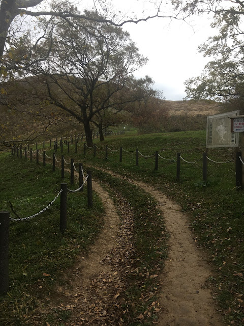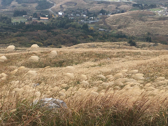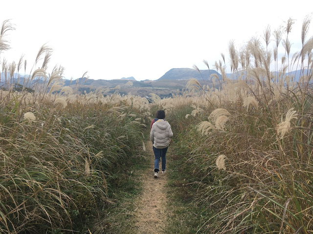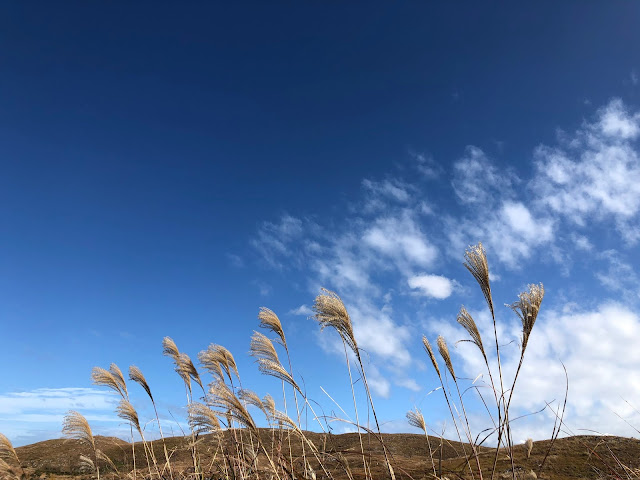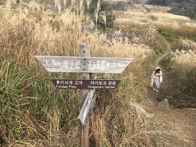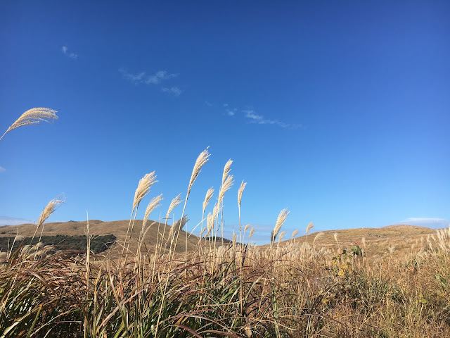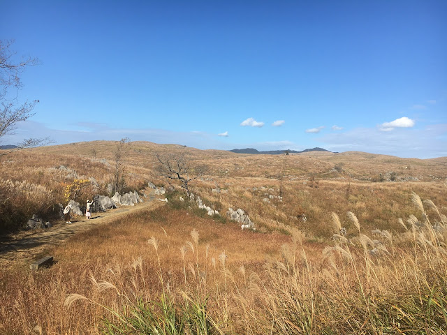我找了几条路线,选了觉得风景最好的。我们走得慢,最后走了3小时。8点半开始,11点半回来。我们车停在吹上峠休憩所的停车场(免费),位于平尾台自然之乡北面1公里 ,有厕所。虽然去的时候是连休的第二天,不过那里的人很少,我们玩的很舒服。