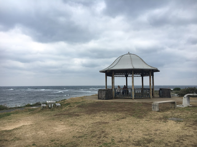 我们在海边的亭子休息,看海景。由于有点冷,我们骑完这条路线就回去了 ,当时快2小时了,争取赶快还车,在路上出了个小意外,不知道是raku老师还是pp自行车撞到柱子了,不过竟然是塑料的,所以没有事,这里不知道是不是为了避免撞到人,刻意做塑料的呢。