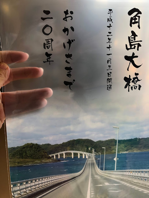 最后大概多了10分钟,不过人家也只收了我们两小时。其实骑行的时间很短,就是路上玩了。今年碰巧是角岛大桥通车20周年,我们离开自行车店的时候,职员还给了我们纪念文件夹呢。