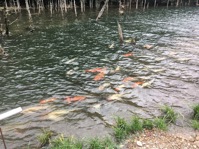 这个地方称为“秘境”,樱花看的时候会很漂亮。池水清澈,鱼很大,还有自主买鱼粮的。