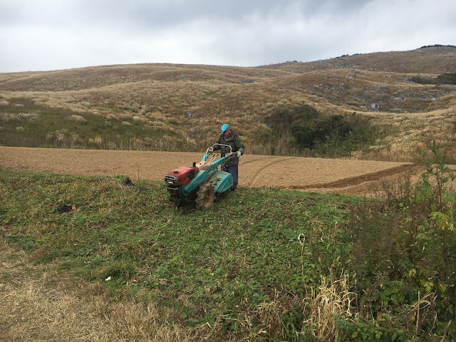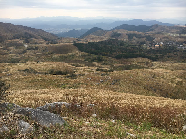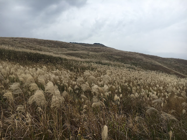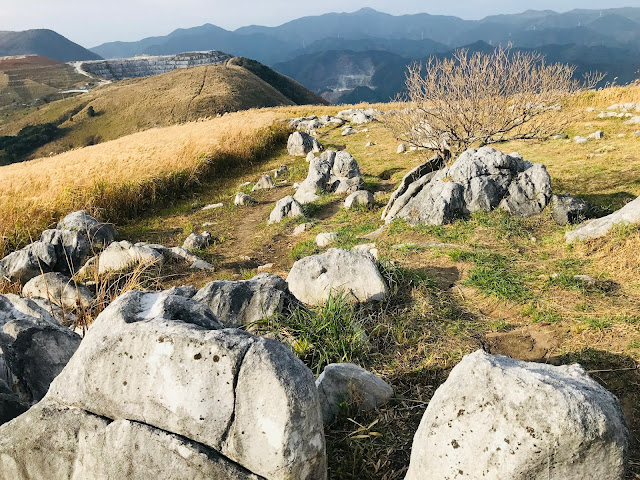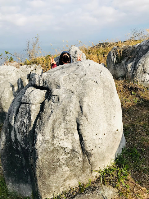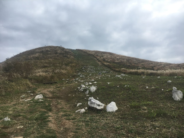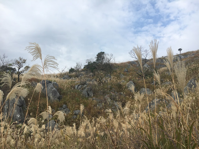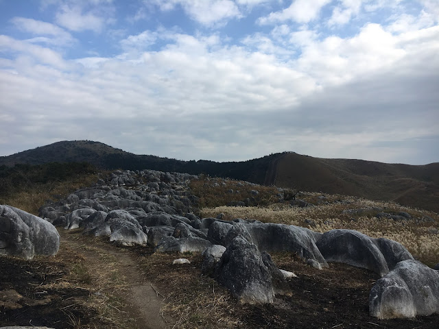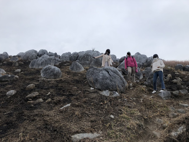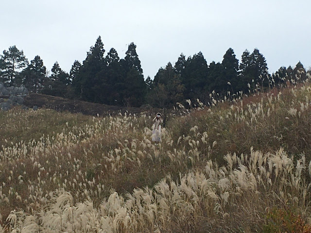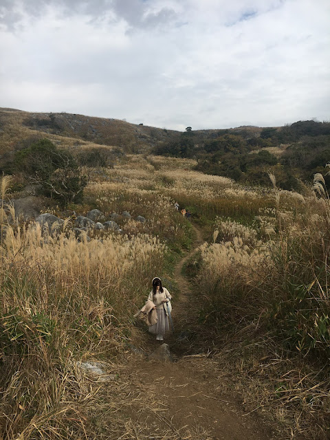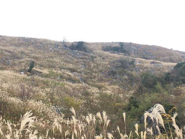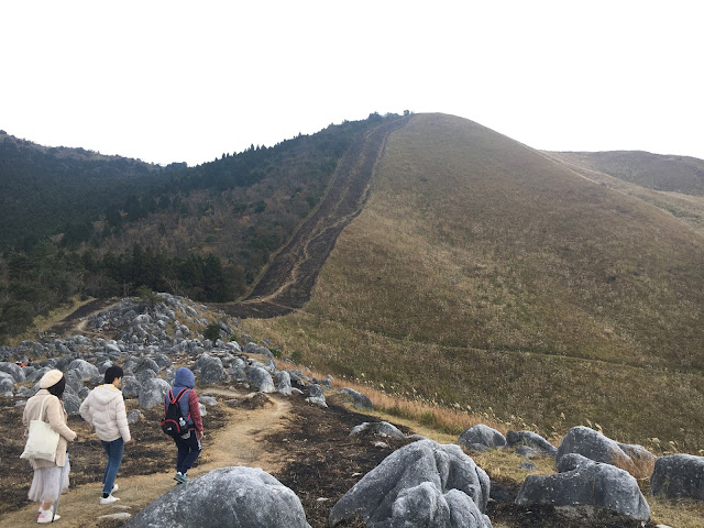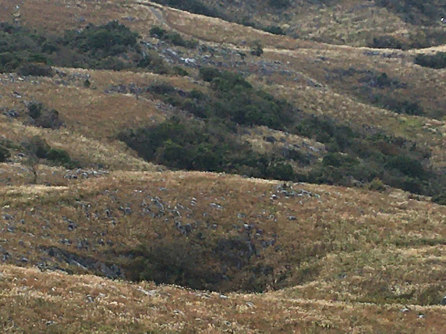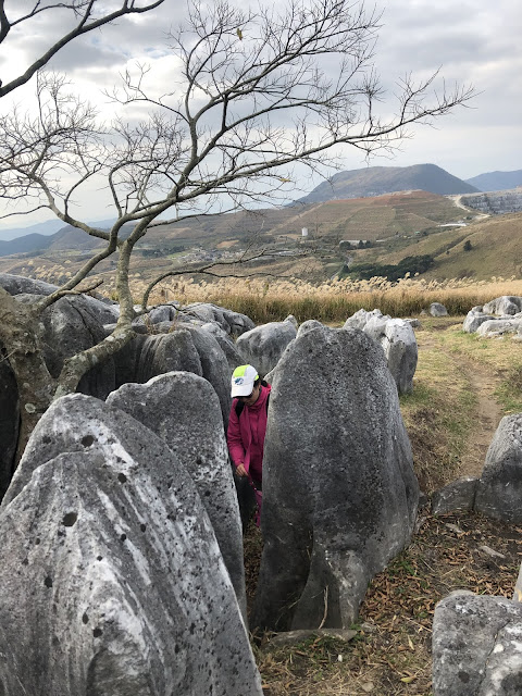 今天7:30起来 ,去最后一个喀斯特 - 平尾台,距离大概20公里,去程由于很早,不堵车,最后5公里爬坡,但不算难开,走了大概30分钟到。在最后5公里爬坡之前有便利店,那个店的厕所是我去过便利店最大的,有三个,女士厕所还有换衣服的地方。因为预报下雨,pp买了把伞最后当登山杖用。