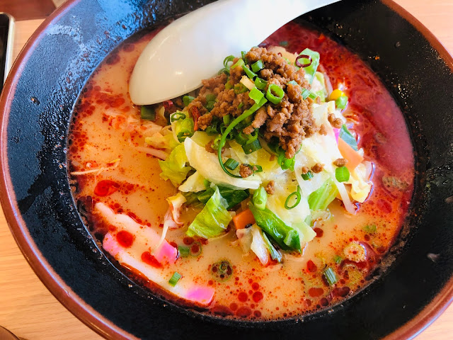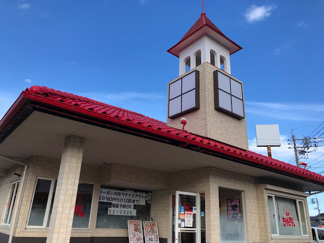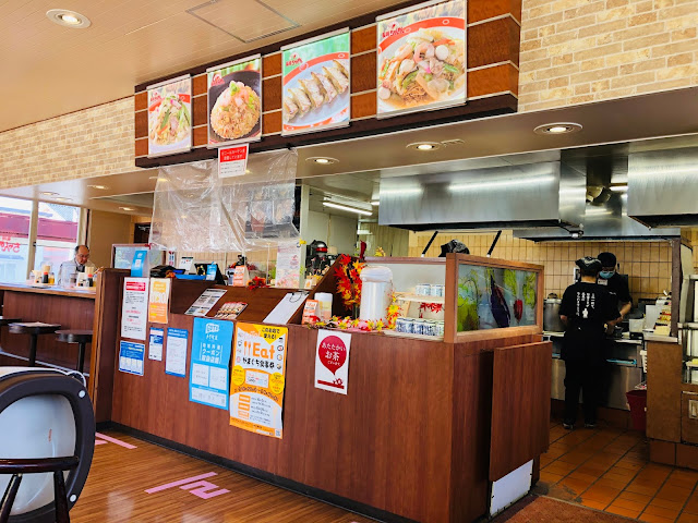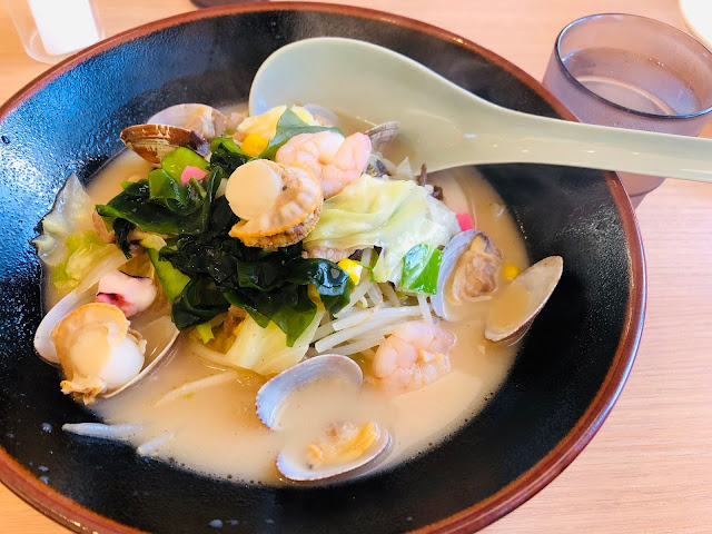 约半小时后,我们到长门了。车停在A-coop超市,吃了连锁店長崎 ちゃんぽん(ちゃんぽん是长崎的海鲜面),三人点了海鲜很多的一种面(连税900多),另外一人点了辣的。两种都很好吃,汤很鲜。