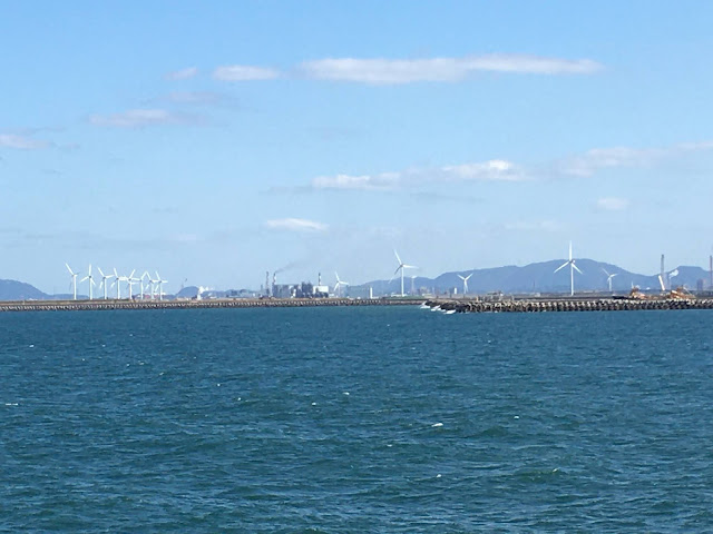 昨晚吃饭晚了,今天九点才出发。今天是连休的第一天,钓鱼的地方在市区西北,路上不算堵车,路也容易,没广岛市那么乱,最后开了好像45分钟左右,没走都市高速。停车场收费300元(全天)。我们自己带了东西去吃。