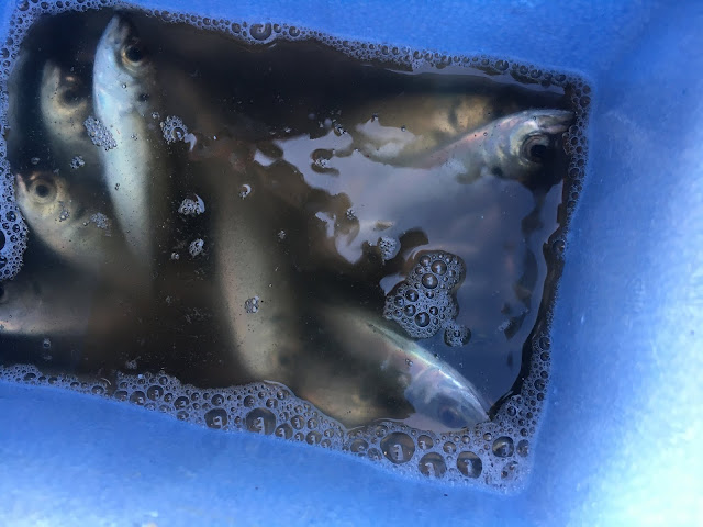 原来大家都不会处理鱼的,那就我来吧。我好像处理了20几条,其实很简单的。由于鱼都很小,每条就一口,20多条吃不饱的。原来想数头数一下有多少条鱼,不过太过了实在数不过来,100条肯定有的。
