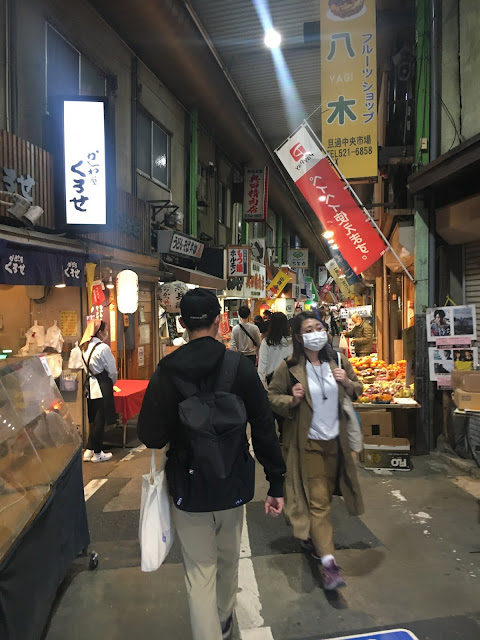 行程下一站 - 旦过市场买晚餐。这个市场海鲜,肉类,蔬菜,熟食,酒类什么都有,蔬菜尤其便宜。我们5个人吃饭连上肉才买了2000左右 。