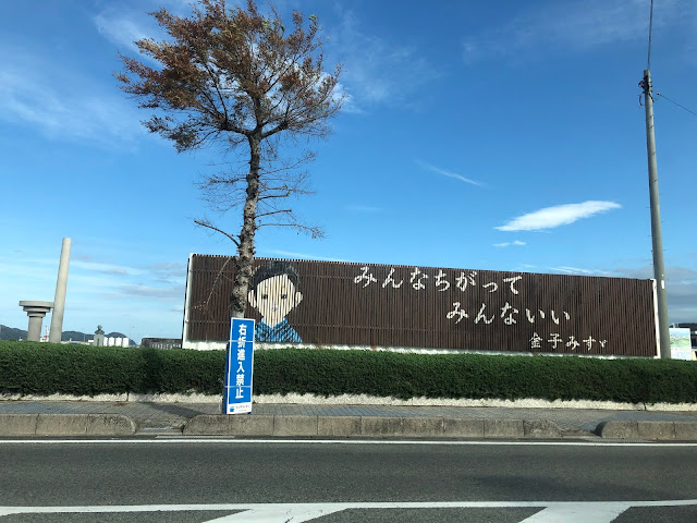 饭后我们在A-coop买了几瓶水(今次pp买的,还给每人一块momiji),之后就直奔青海岛了。路上我们看到金子みすゞ 。她是大正时代的本地童谣诗人。