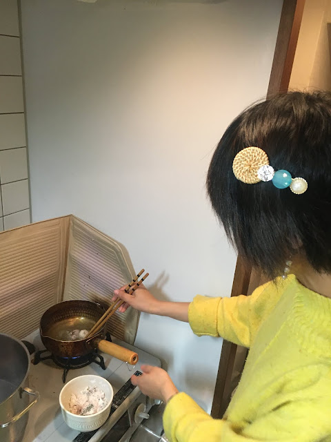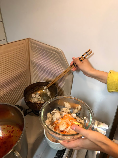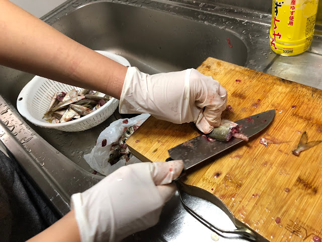 回到学长家里,我们开工准备晚餐了。今晚吃竹荚鱼宴及火锅。