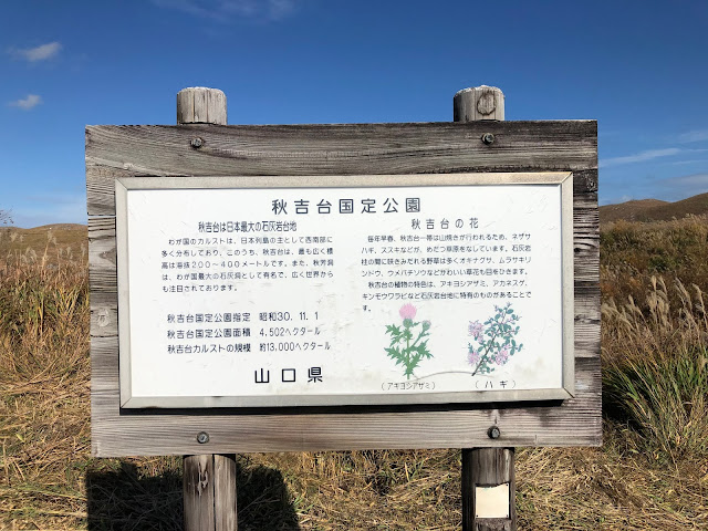 早7:30大西条出发,10:30到秋吉台。这是我们路过的地方,没有多待,直接去观景台拍照,附近绕一圈然后就坐车走カルストロード(Karst Road)去长门午饭了。