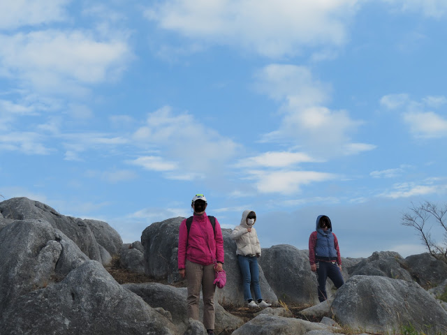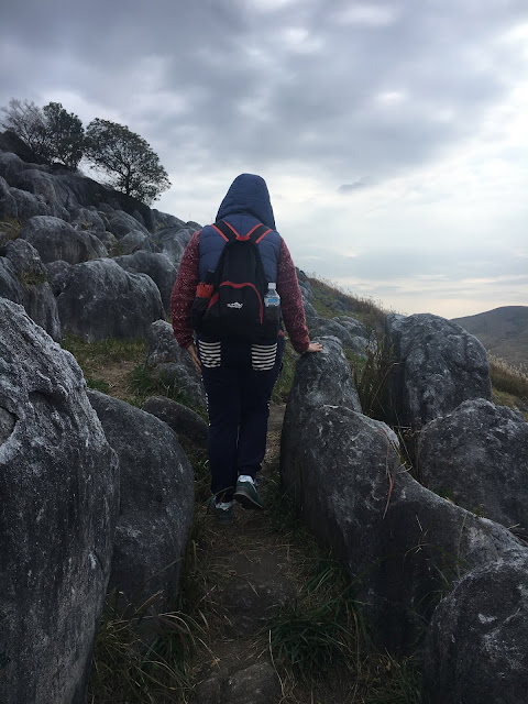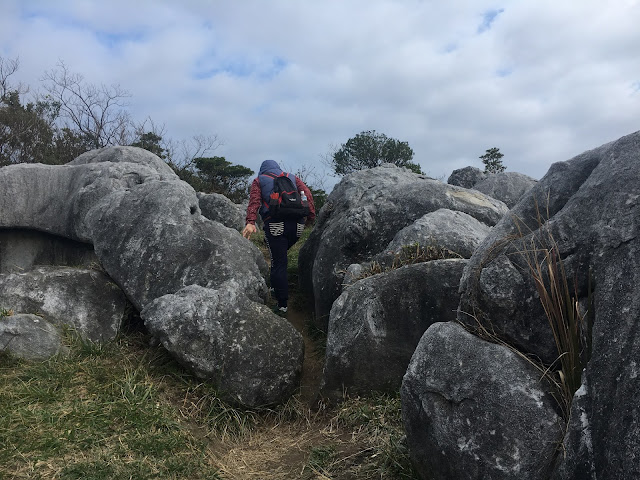 走着走着很快我们就开始爬坡,看到石头了。这里的石头形状各异,路有时候不太好走,要在石头缝中穿插。