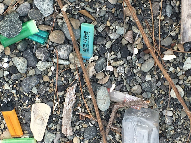 看到一个海滩,我们下去了,发现有中国和韩国的垃圾呢。后来第二天在博物馆学了点地理知识,知道垃圾是从南面飘到北面的日本,所以没有俄罗斯的垃圾。
