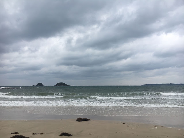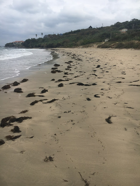 吃完早餐我们就去附近海滩逛逛,这里很多海藻,上面有不知道什么像果实的东西,踩上去有咯吱咯吱的声音。