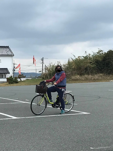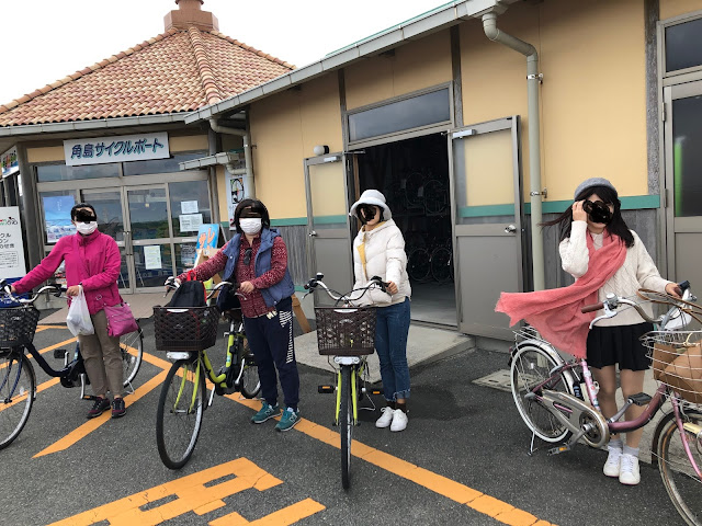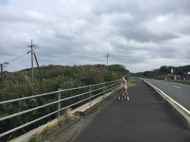 我们就在下图租车,这里也有土产卖。这里的电动车骑着很爽很舒服。我们骑的是去灯塔的路线,叫夢崎コース,路上大部分有行人路,因为平时去,车也不多。