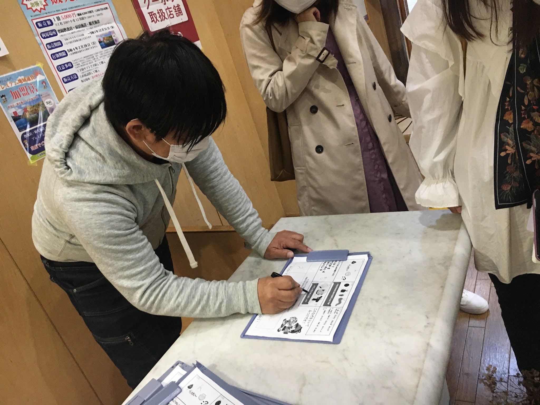 我们要去前台登记了。