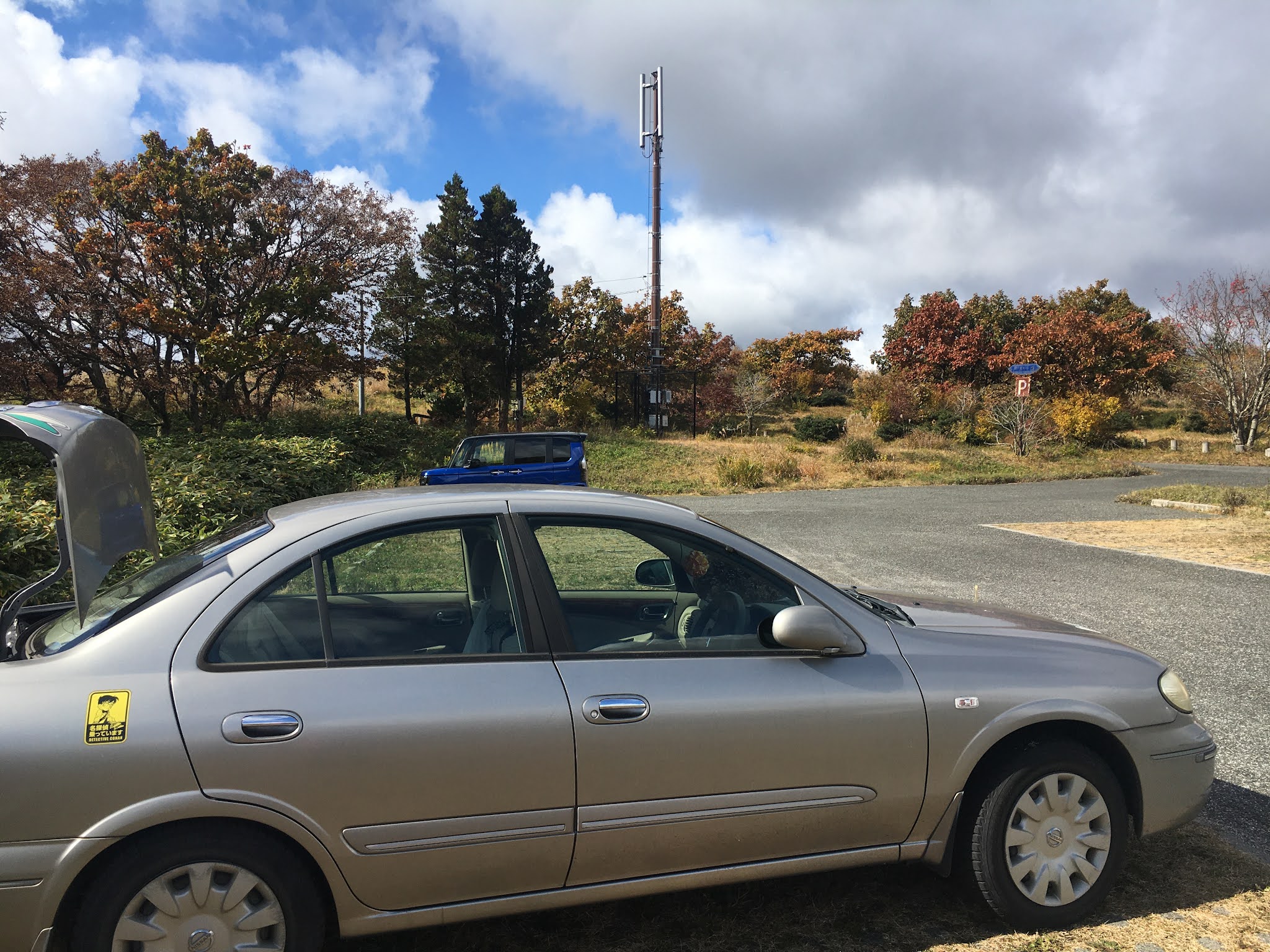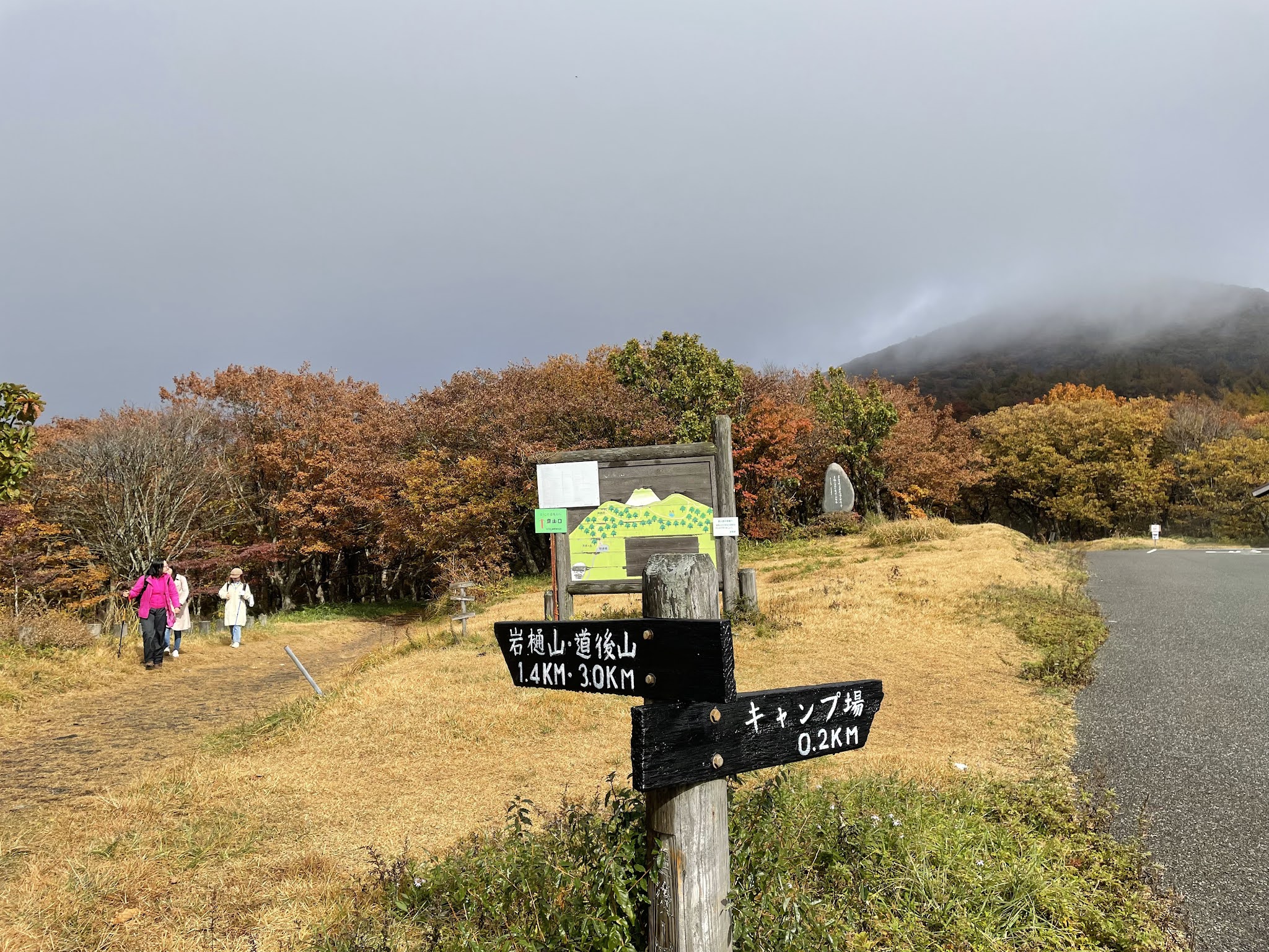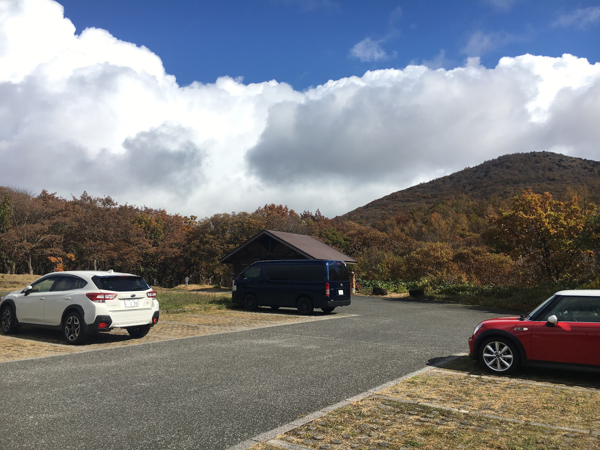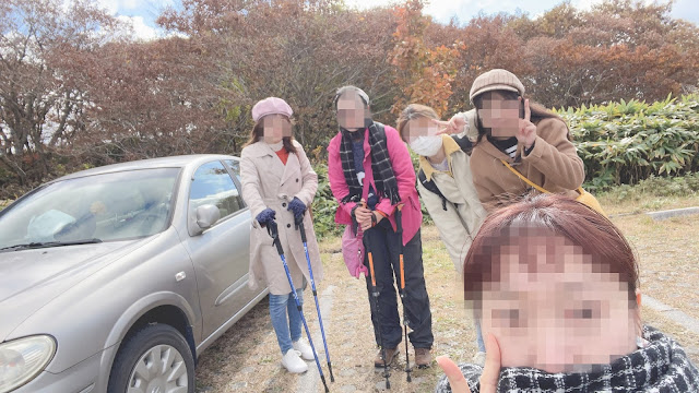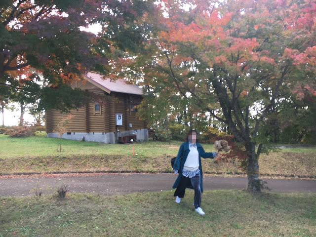 我们9:30发车,大概不到11点到。开车路上红叶很漂亮。快到道后山停车场时路很窄,避车处也不多。先感谢 一下一直记得小浪个的干妈raku老师。