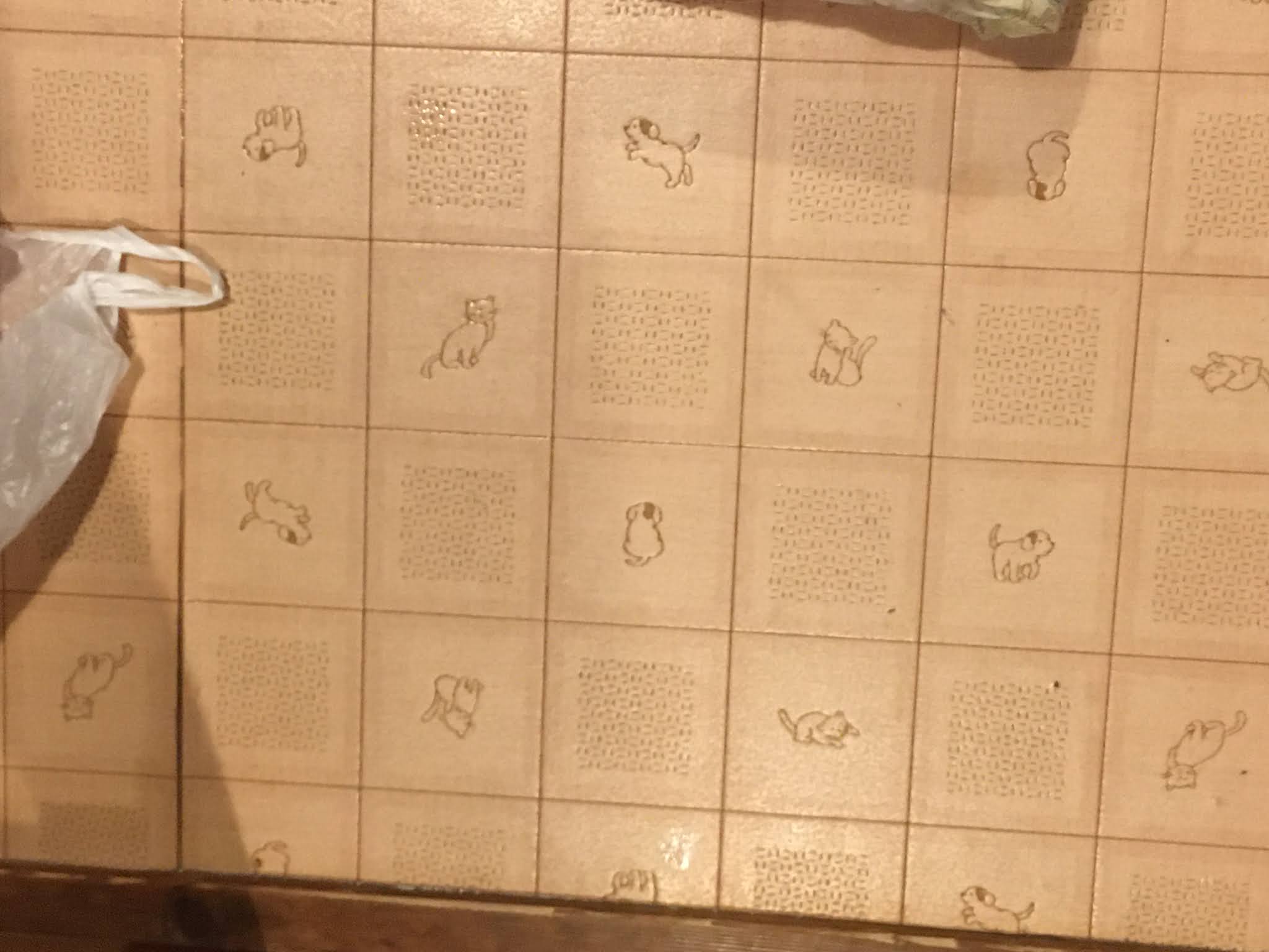 地上铺的也带有狗狗。
