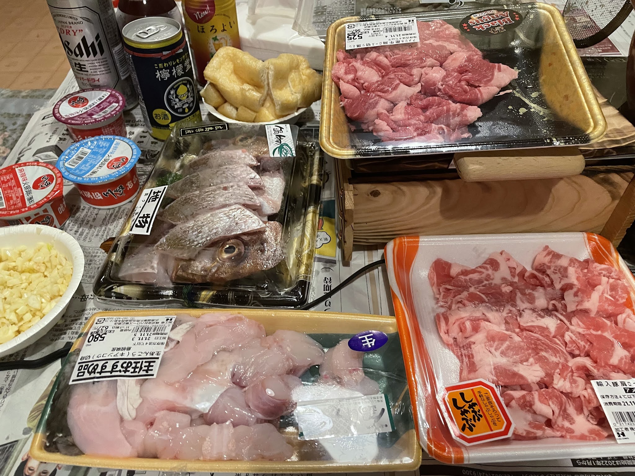 开饭了~下图有安康鱼,鱼皮很弹性的。