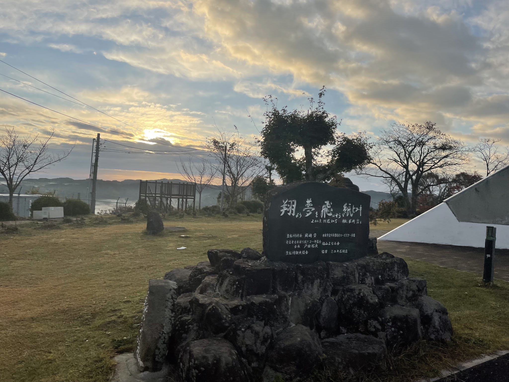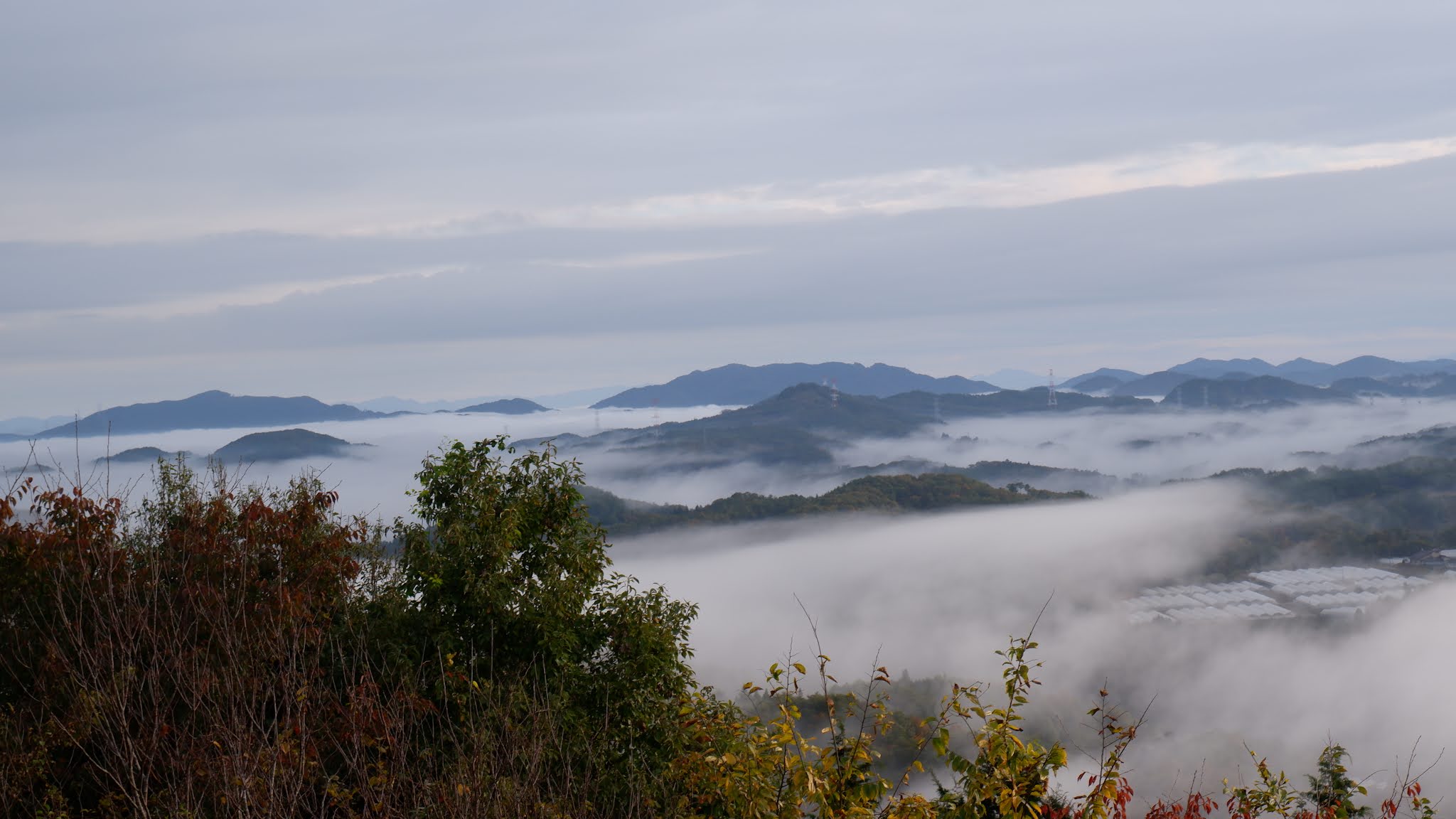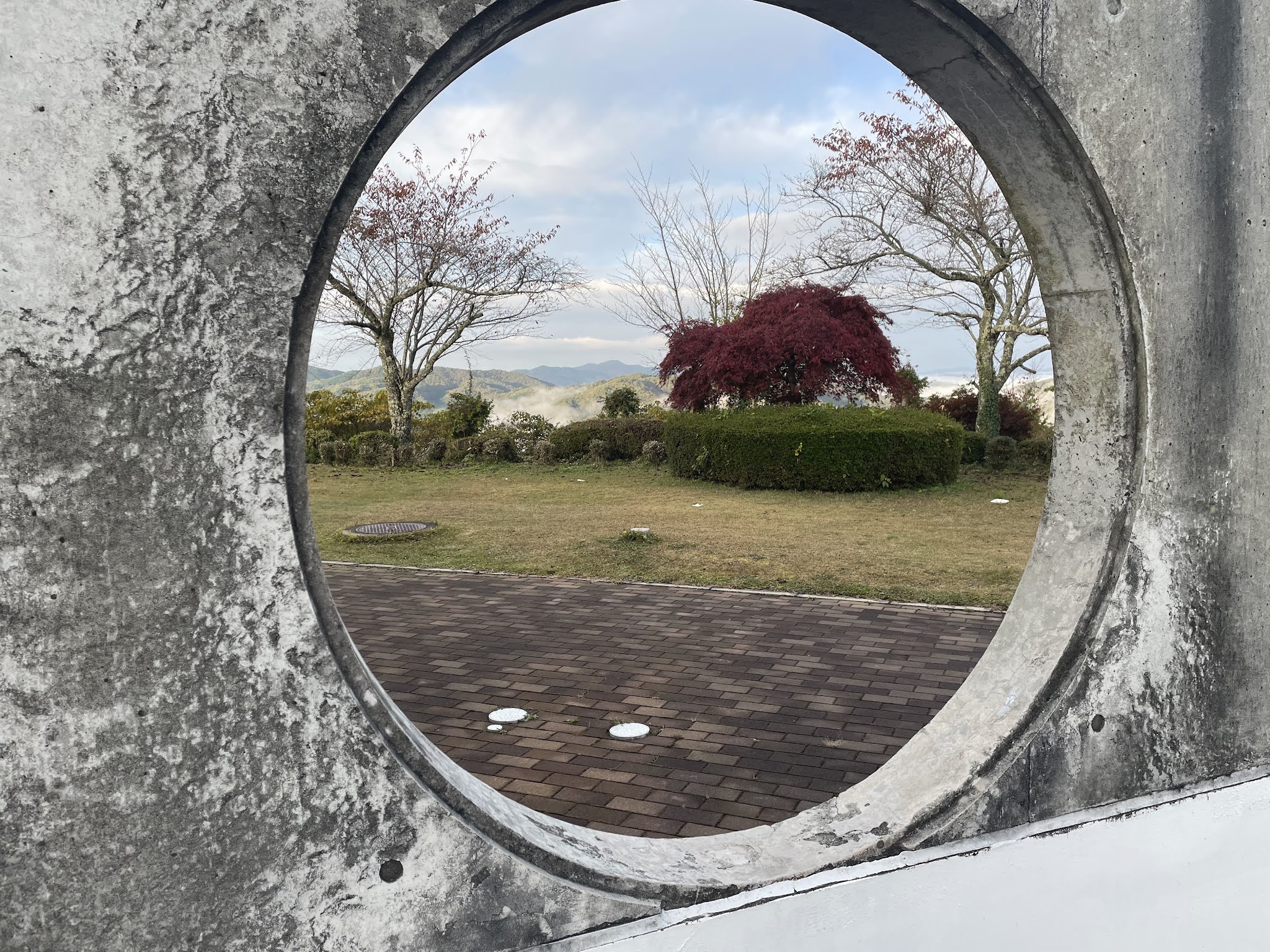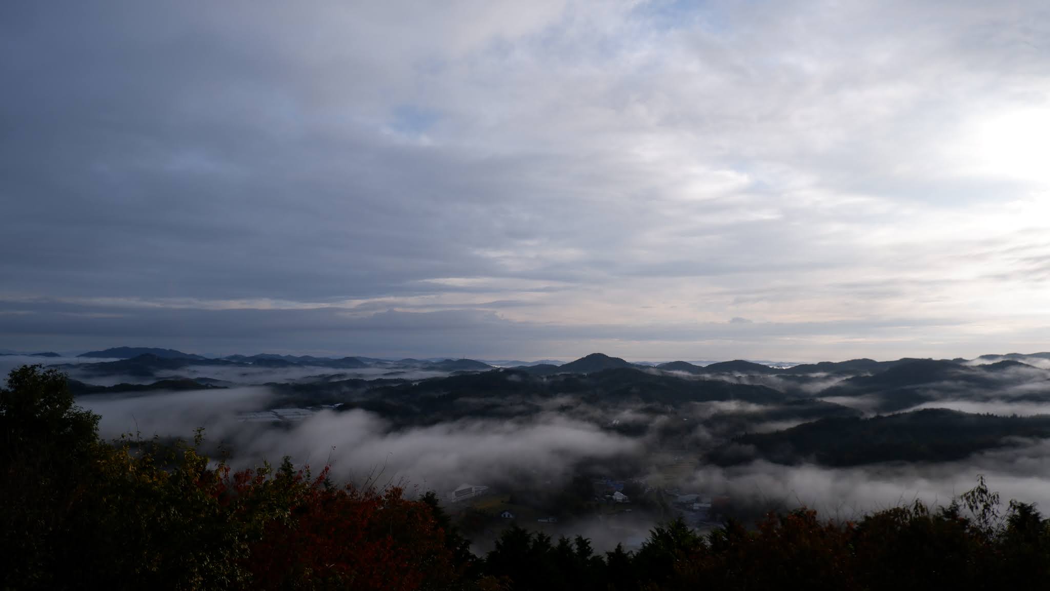 早上不到六点半起来,出发去恋人之圣地看云海,那是米见山,海拔不到700米,我们大概7点到。开车十多二十分钟。最后一段路比较窄,不过当时也没对头车。今天是平时,山上除了我们还有一辆车。