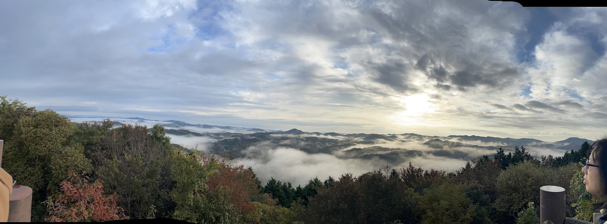 我们现在从山顶绕一周,多角度看看云海。