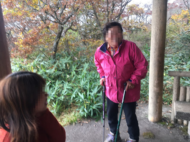 路上遇到好些人,都是年纪大的,大概是今天是平时吧。走到三分一时有个亭子,我们遇到一位奶奶和她丈夫,聊了一会。