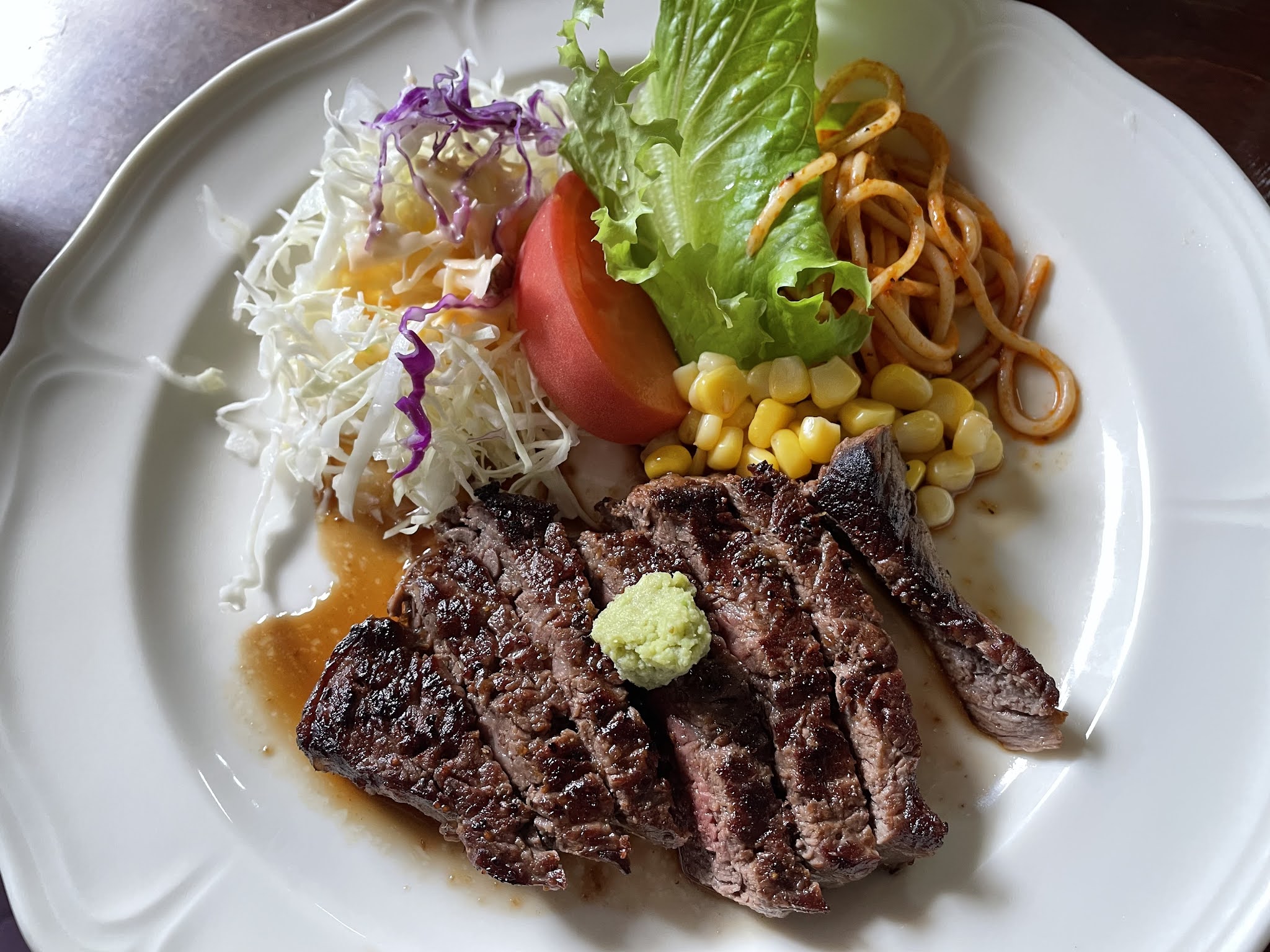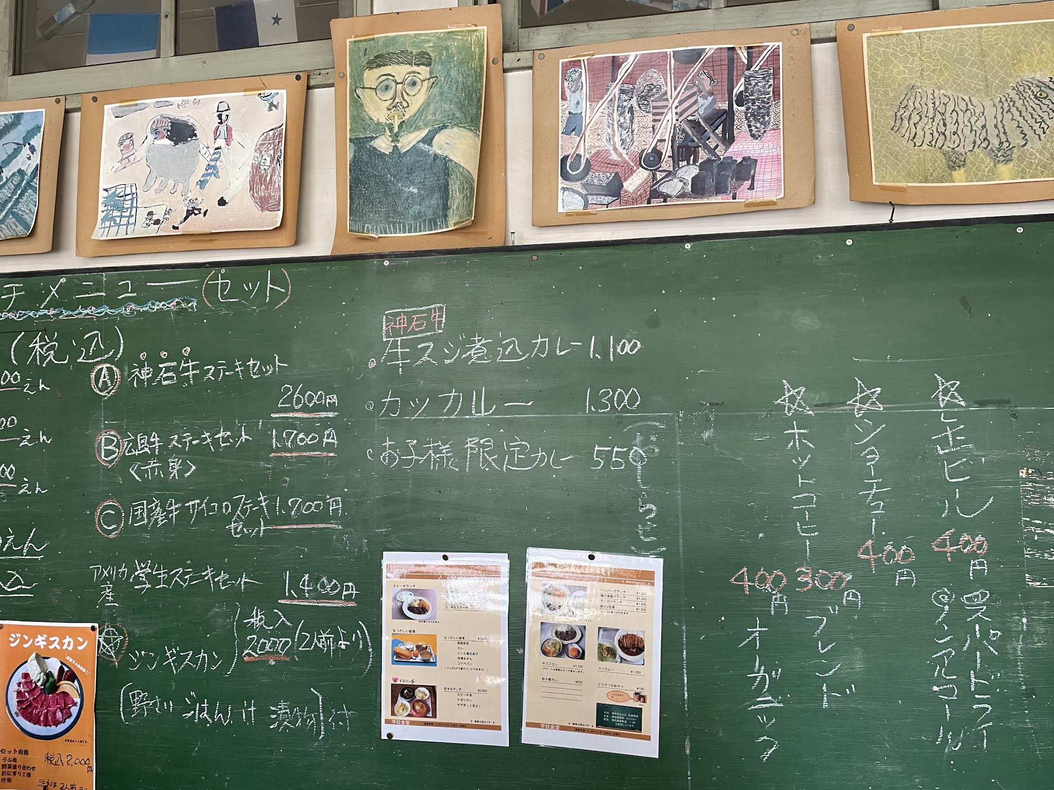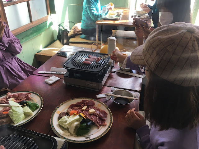 继续开车不到10分钟,我们到学校食堂了。这个学校1984年闭校,现在改装成食堂,保留原来风貌,很有特色。吃的大部分是牛排,包括最高级的神石和牛。我们5个人,当中3个吃了最贵的2600的神石和牛牛排,另外两位吃烤羊肉套餐。