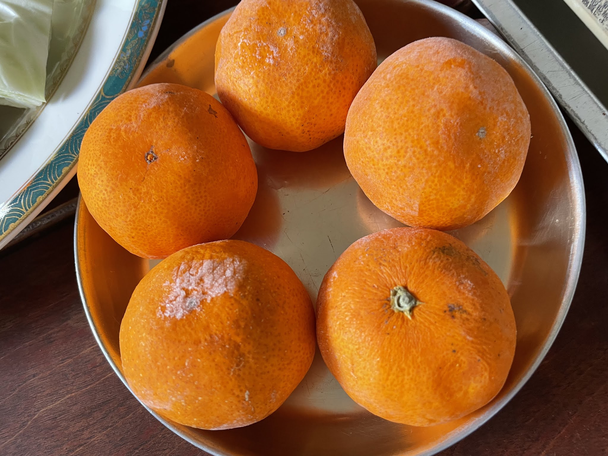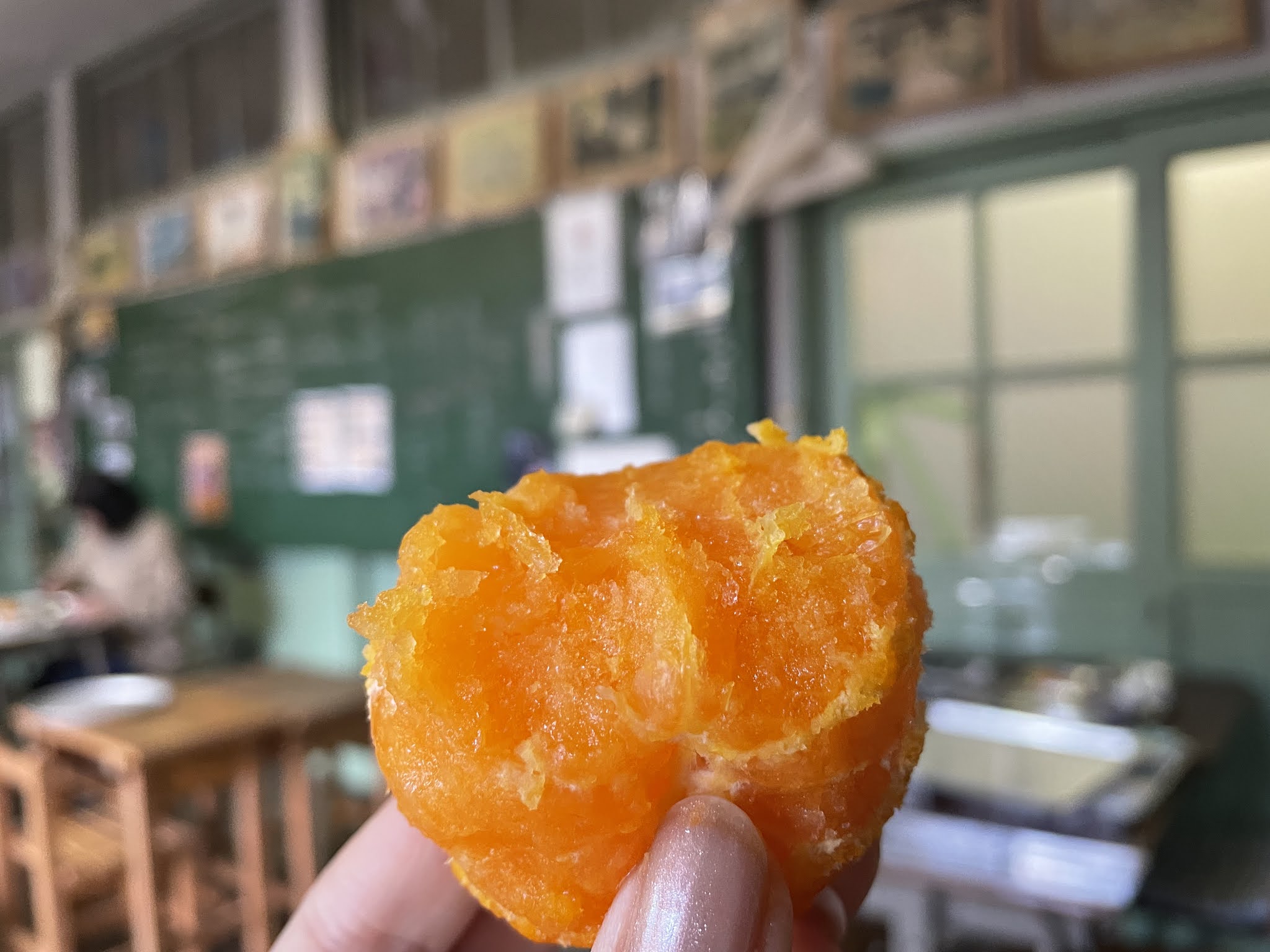 最后甜品上冰冻橘子,好像吃冰棍一样。