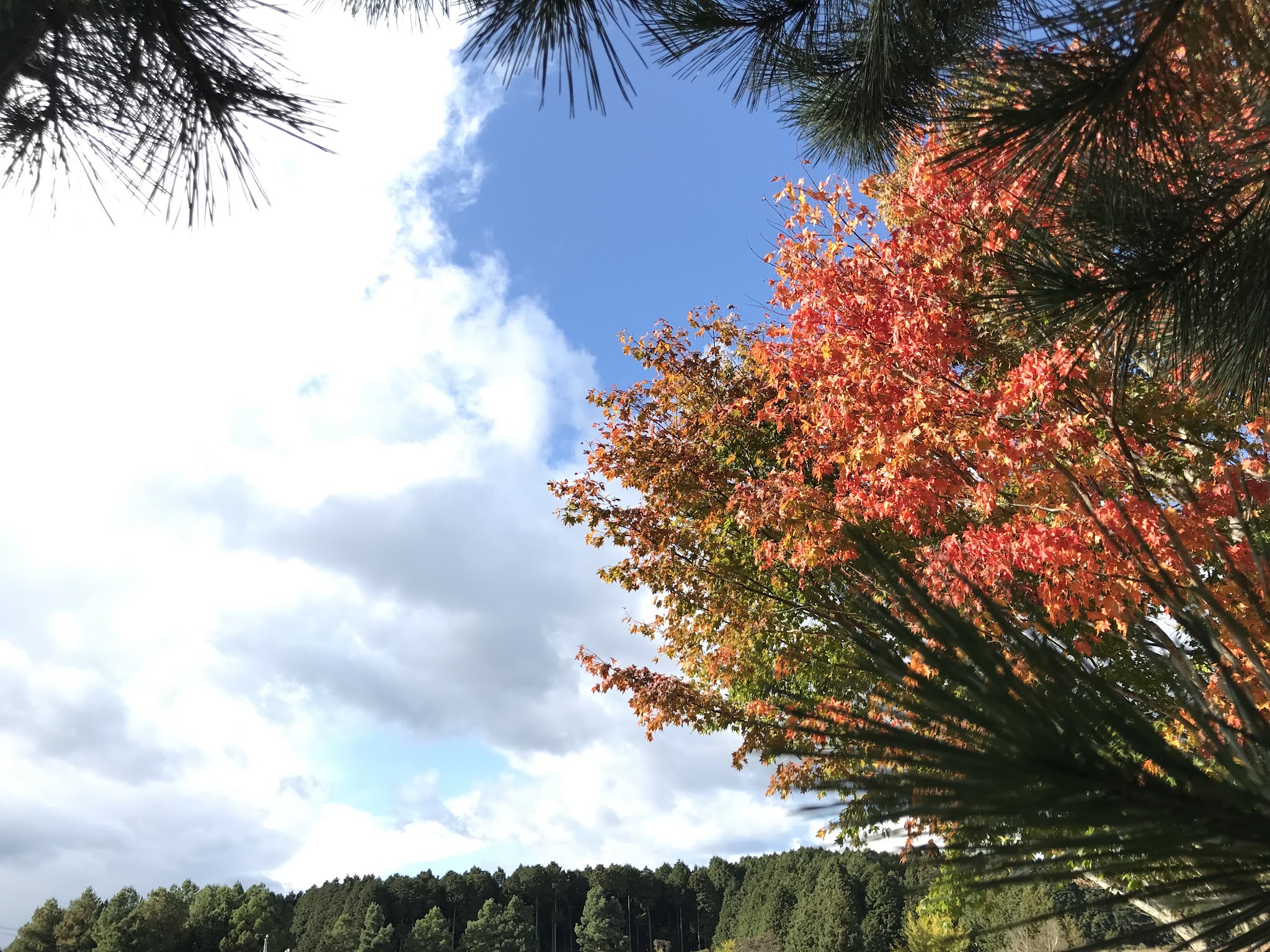 我们泡温泉的地方附近也有红叶的。