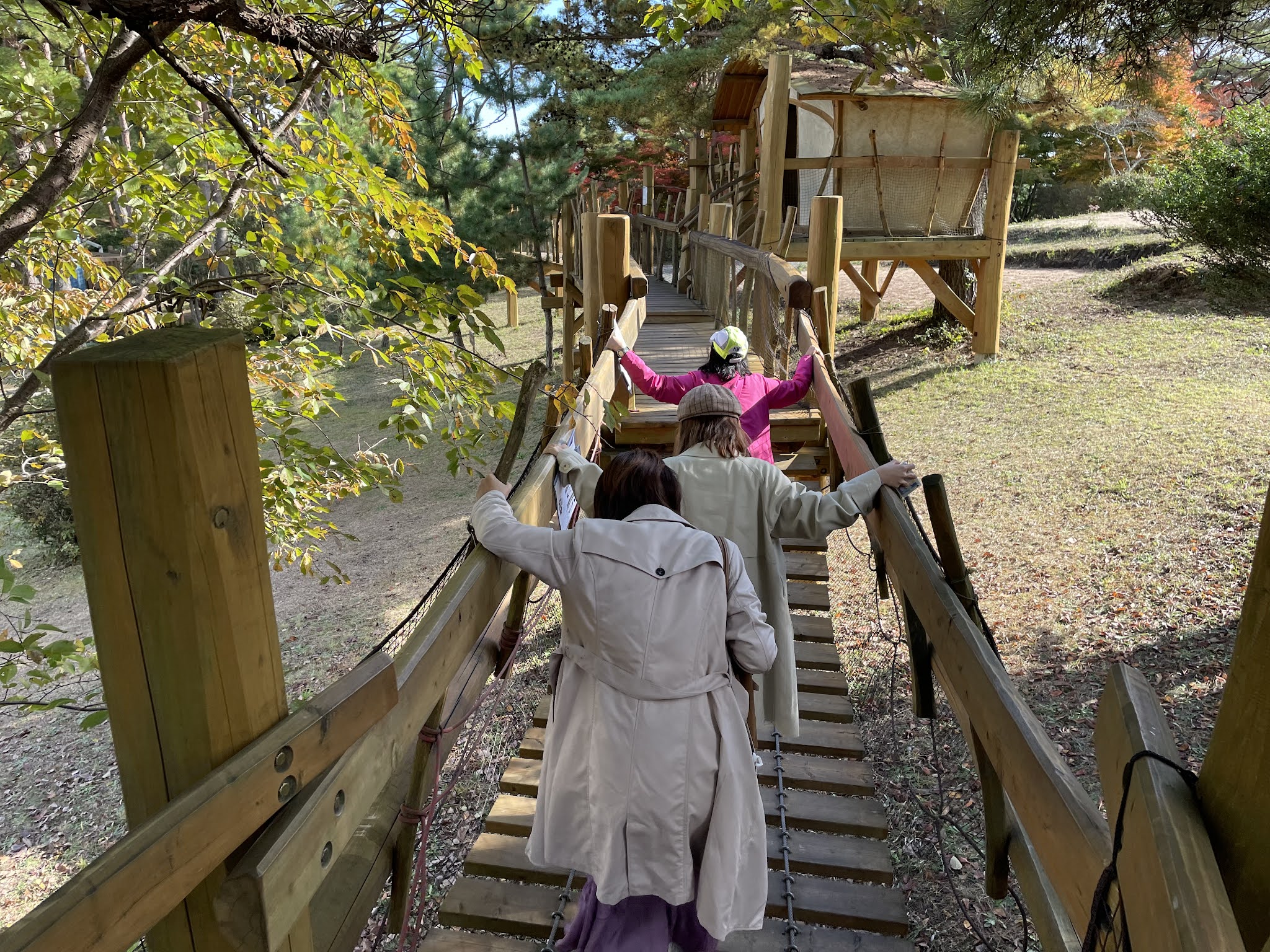 这条吊桥几个人一起使劲晃,玩到头晕。
