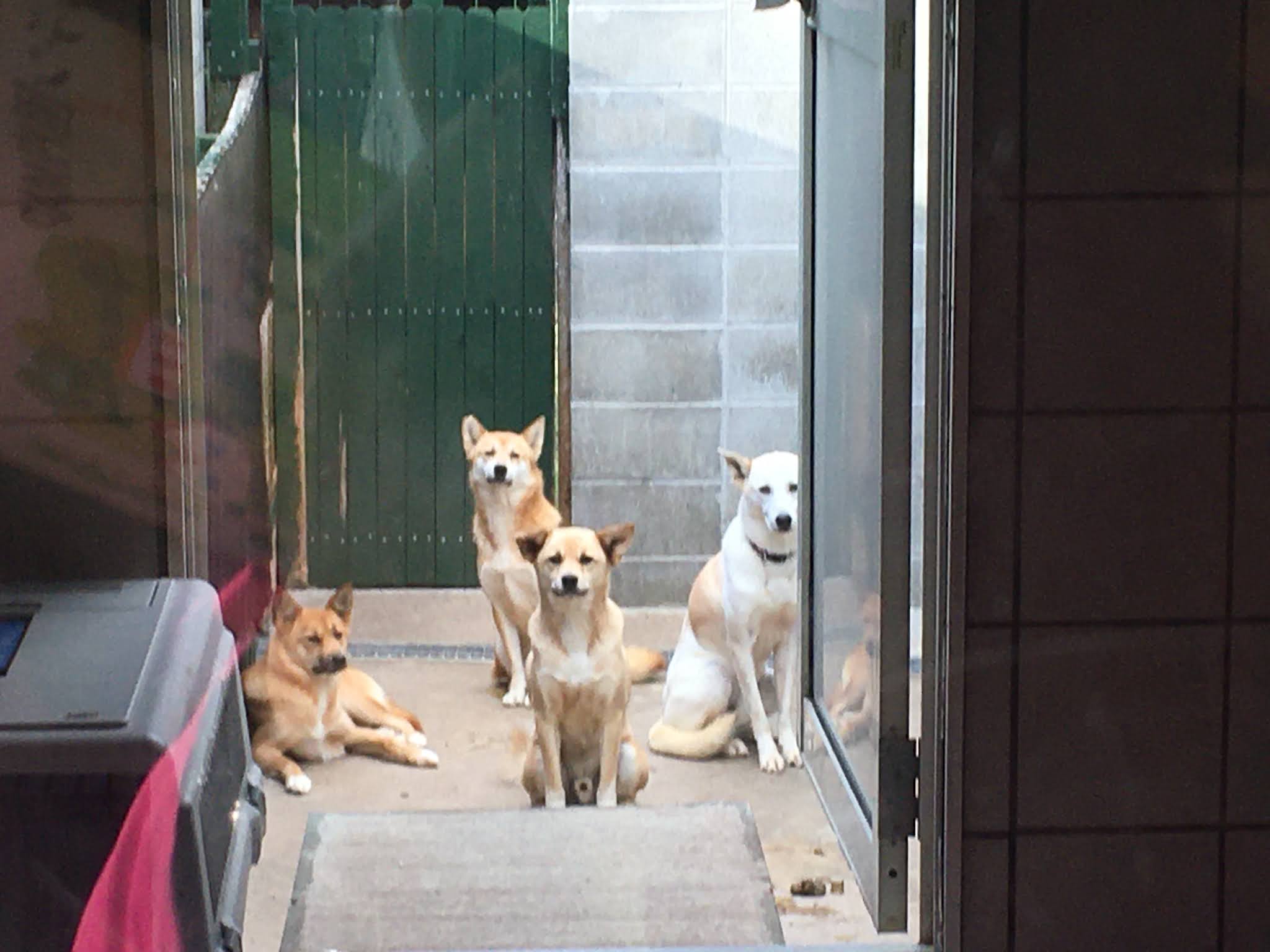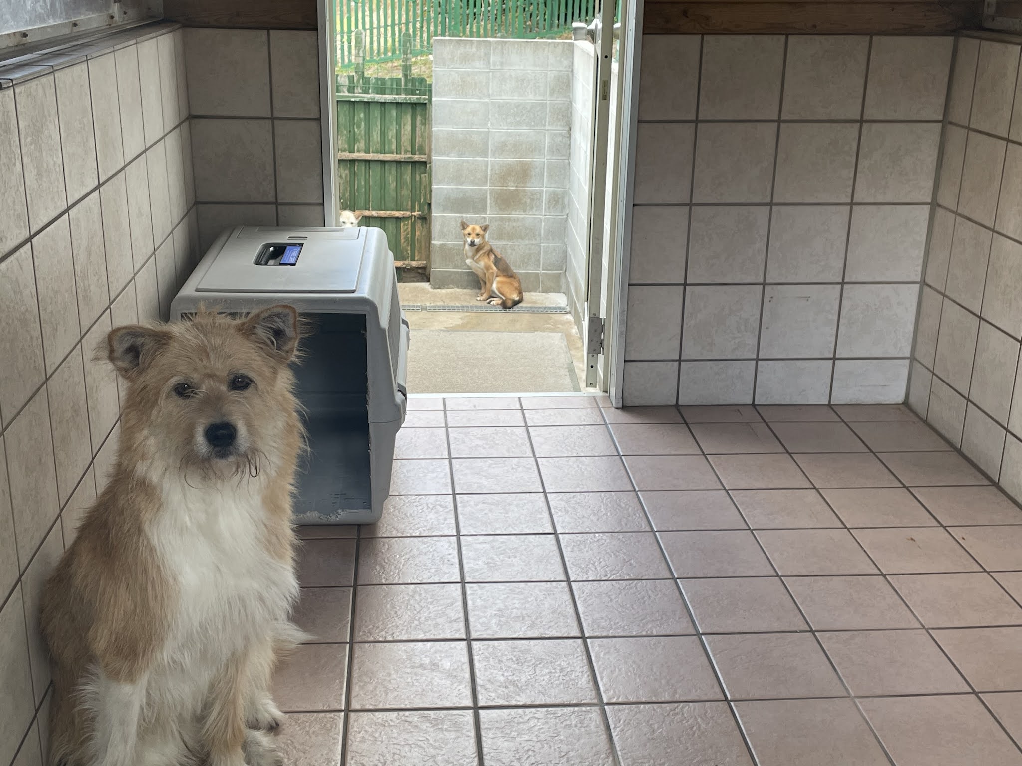 这里是大狗狗住的地方,大概有10个屋,一屋住四只狗,都有空调。同一个屋的好像都有共同特性,有些是一同叫,有些是一同都不叫。狗狗都要专人伺候,一天出来散步两次。有时候要一对一,有些跑的比人还快。raku老师问工作人员在这里工作是不是很开心,得到肯定的答复。