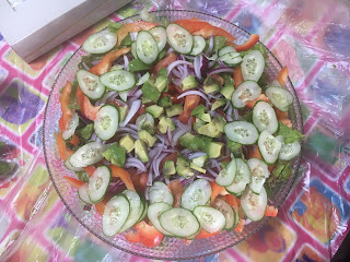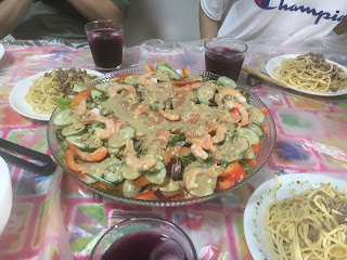 这是午餐全部,还有紫苏苹果醋及我妈拿手的蒜蓉肉末炒意大利面。