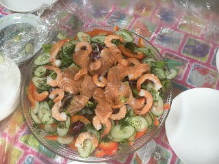 地址:広島県東広島市西条町郷曽1619- 2 (广大以南过了东广岛自动车学校不远,位于田野之间)每个月第二及第四个周日咖啡店开放。疫情前还有烧烤的。 先跑题从午饭开始,请了两位客人来家里吃我的酒店级海鲜沙拉,配中东芝麻酱。
