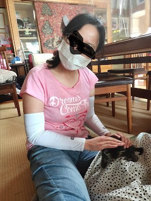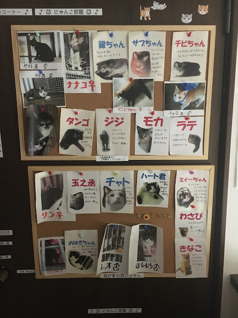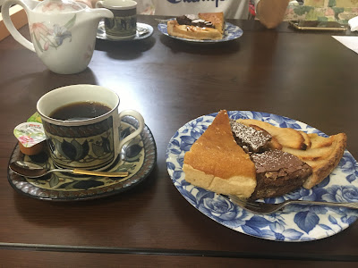 小谷女士跟我们说了她很多的事。她丈夫原来是海上自卫队,估计二三十年前因为脑瘤去世。他们没有孩子,死后留下大笔遗产给她。他们那里有很大的地,用遗产建了网球场给侄女,但后来大了不用了,小谷女士就在20年改建成猫狗收容所,并且找了个伴侣。她说其实自己也不是特别喜欢猫狗的。 说了20分钟,我们才坐下来吃蛋糕。应该是600日元两块蛋糕+咖啡,不过当时她在厨房自言自语说:“三块蛋糕吃不吃得下呢?”最后给了我们三块,我吃得下,raku老师吃不下。蛋糕她自己做的,很好吃,咖啡还能续杯。
