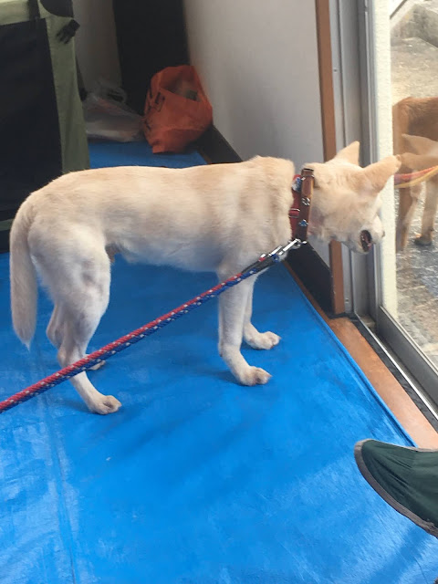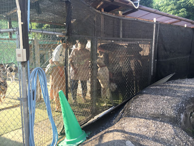 看完猫小谷女士带我们去看狗。它们分开好几个地方的。虽然是有栅栏,但我还是不敢近距离拍照,它们都在叫,大家凑合着看吧。这里没有小狗,都是中型到大型的