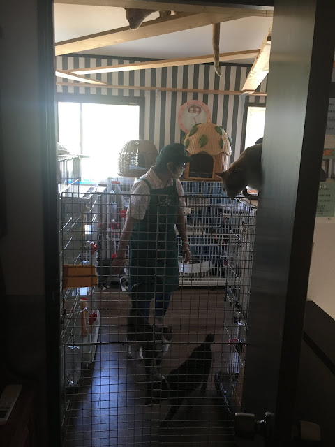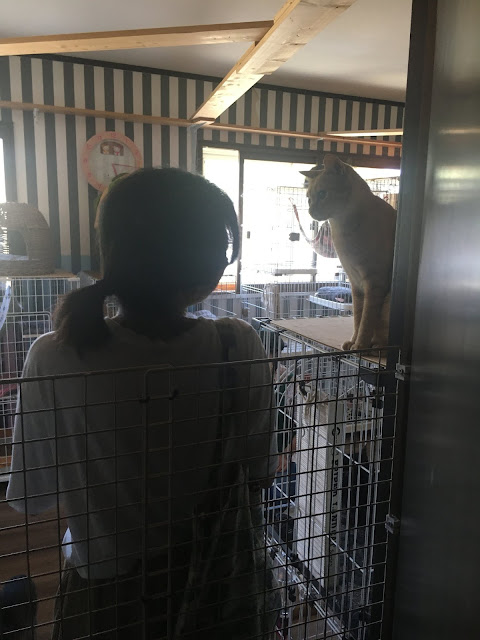这种事情,当然是raku老师行在前头,我都还没看到它们时她已经告诉我猫没有在笼子里。我从门口看到那个情况实在不敢进去。大概十几平米的小屋子,有二三十只猫。最重要是为了方便它们活动,房子空中有木板给它们跳来跳去,你在猫屋它们随时在你头上飞过。