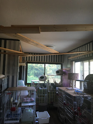我上几张第二次去的照片(特写都是Raku老师拍的),第二次去它们部分在睡觉,在笼子里,没在笼子的也没很活跃的走动,所以这次我敢进去了。