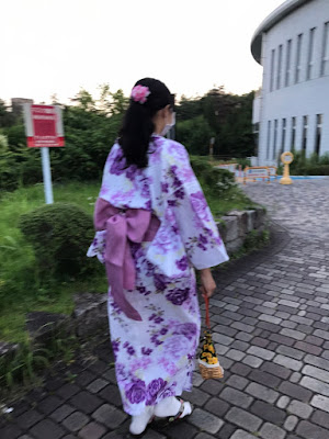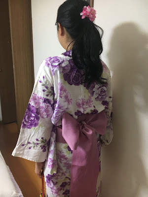 看完猫狗之后,我又跑题一下。 我穿了raku老师的浴衣去学校拍照。我还带了头饰和合适的包配。