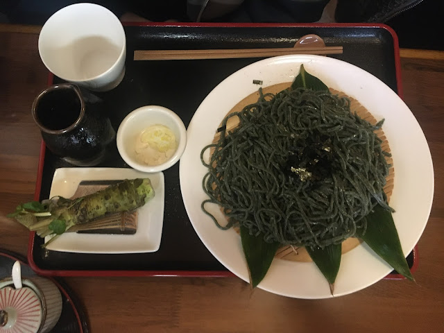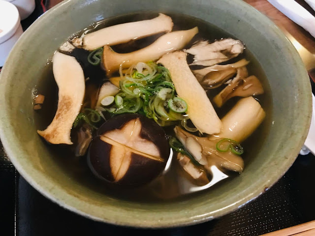 我们继续上路 ,10点50多分就到我们午饭的地方鬼荞麦了。其实我原来打算逛完才出来吃,不过当时大家都饿了。还好来得早,我们走的时候要等了。这边的荞麦面都比较贵,大概要1000一份,不过真的很好吃,磨的粉是粗粒的,很有颗粒感(加入了加荞麦壳),很筋道。出云的荞麦面是出名的,长野也有名 ,不过我吃过却没觉得有啥特别,出云的的确好吃。