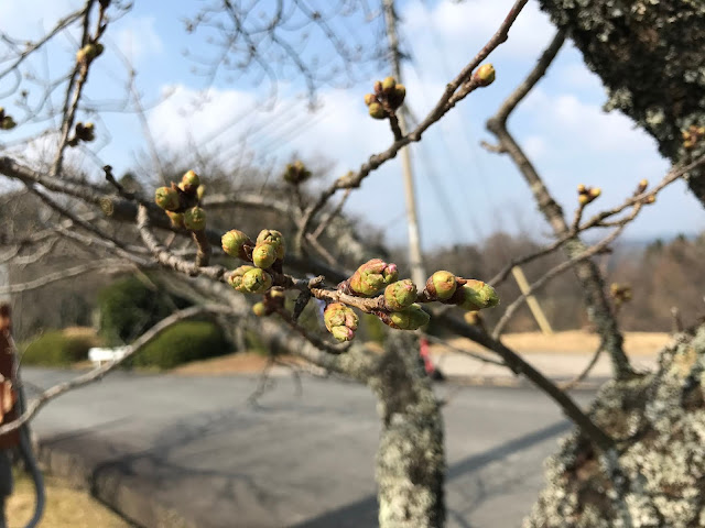 虽然大部分樱花还没开,但我们阳台前的一颗大樱花树先开了。