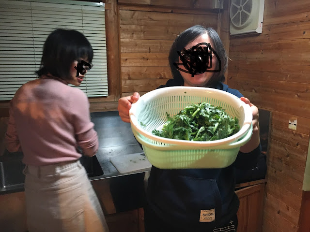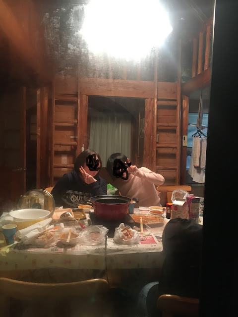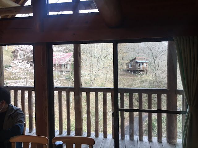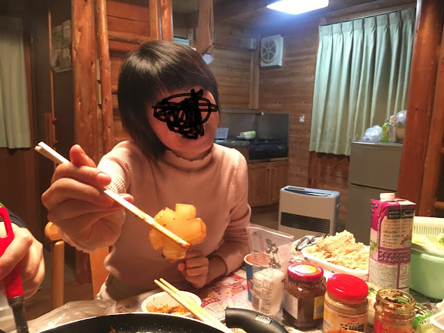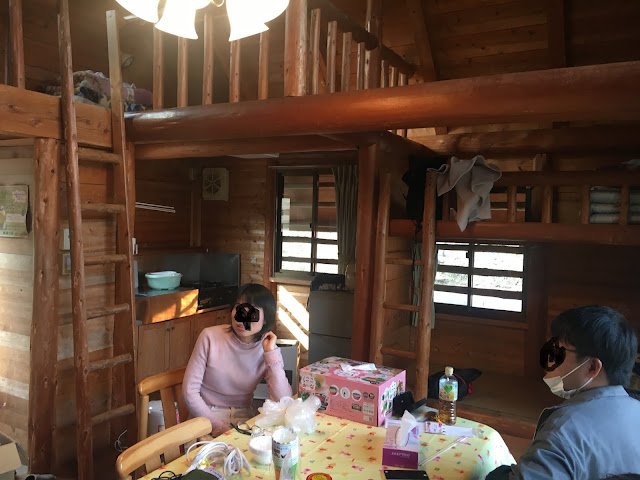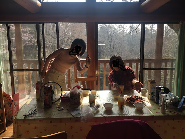 我带大家看下房,明早再带大家在营地晨运。我们又一次住森林小木屋, 这里很多樱花树,过两三周肯定漂亮极了。这次住的地方比我们以前的便宜,一间小木屋住满了每人不到2500日元,房子不算很大,但也不少,设施不是很全,但也可以。就是厕所开门声太大了。