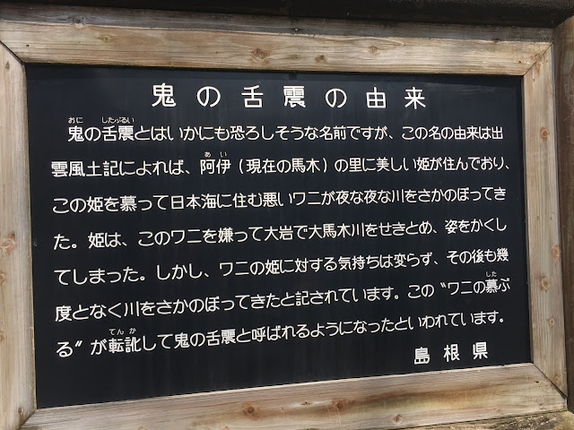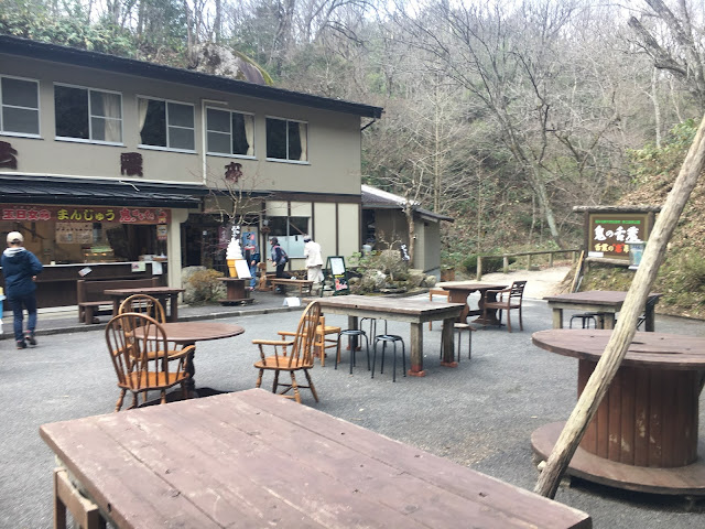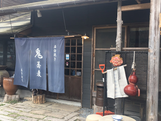 12点左右我们吃完饭了,再开车两公里就到鬼之舌震了。入口前也有家店 - 舌震亭,也有荞麦面吃,还有冰淇淋啤酒等。如果想吃荞麦面的话,是鬼荞麦比较好。但这个地方有室外座位,你不吃也可以坐,休息一下。
