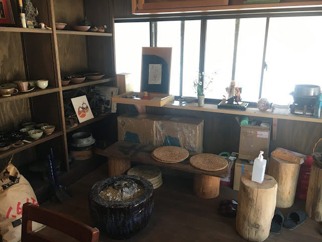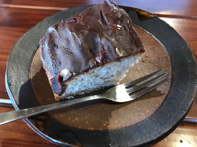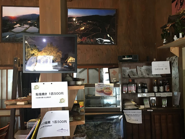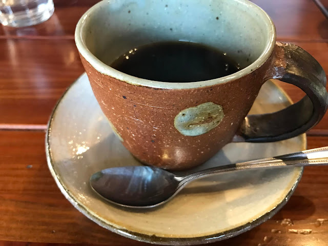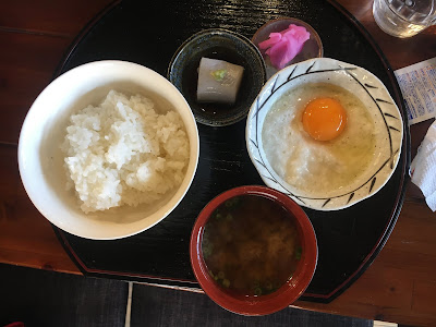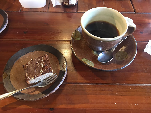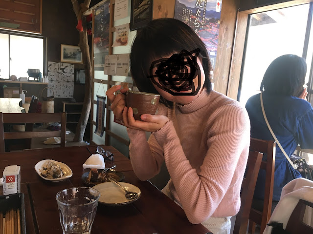 接近两点,我们终于到了吃饭的地方了,这一带是有炼铁的历史的。这家餐厅很有特色,原址接近200年历史,不过房子不知道什么时候见建。当时去只有一位奶奶在工作,前台后厨都是她,所以上菜比较慢。今天每位客人都送咖啡和蛋糕。她说平时周一客人比较少,所以今天没什么菜能提供。我们去的时候只有山药配生鸡蛋及鱼子天妇罗定食。