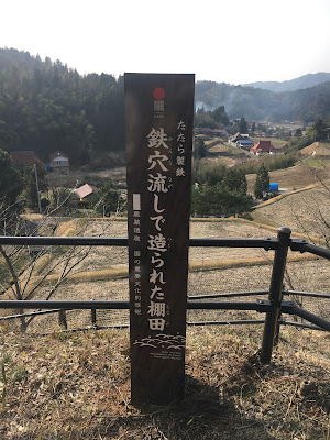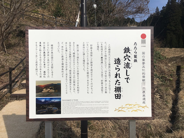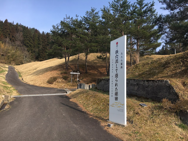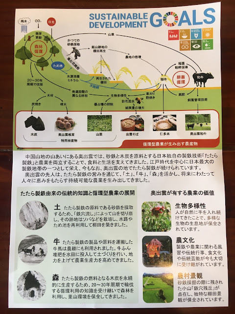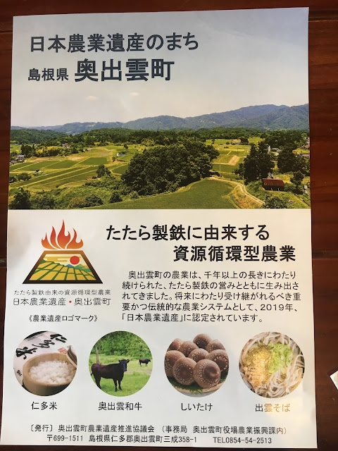 看完餐厅,我们来学学科学吧。来这里学科学比看梯田重要,知道科学背景,再看梯田就有不一样的感觉。たたら是奥出云1400年前的炼铁技术。首先工人在山上砂铁,之后挖过的地改造成梯田,浇灌用的水就是炼铁用的水,从种稻子开始行程生态循环,包括养牛,椎蓉,仁多米,荞麦,和牛等。