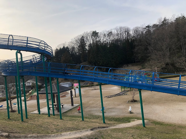 D2: 早7:30打网球-->早餐-->奥出云葡萄园 -->尾原ダム(大坝)-->野猪观赏-->横田相爱教会看一眼-->绵打公园(梯田)及在附近午餐-->出云三成游乐园玩巨大滑梯