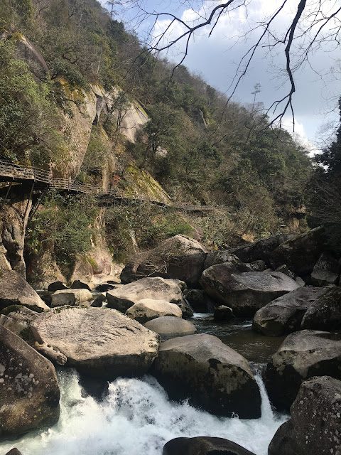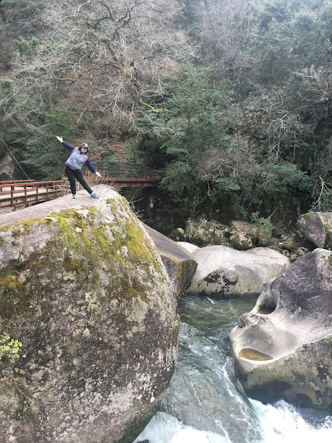 这个地方给我的感觉好像去年爱媛去过的八釜溪谷,岩石也是鸥穴。虽然没那么震撼但也很好,尤其这个地方建好了木制栈道,很容易走,一家大小都可以(但返程我们走的路是难些的)。