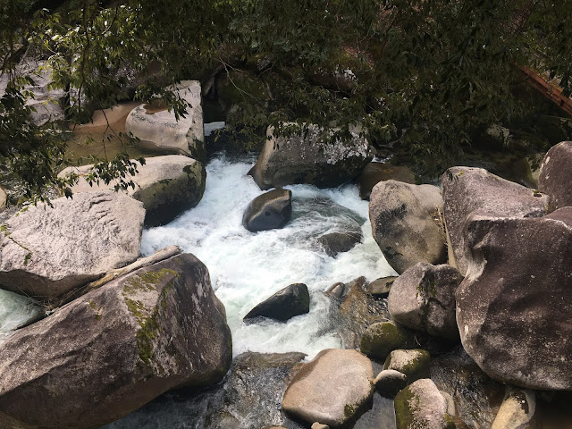 我们返程的时候就从一条桥过去对面,走另一条路返程了。这条路难走点,要上上下下的,比起木质栈道要更接近河边。